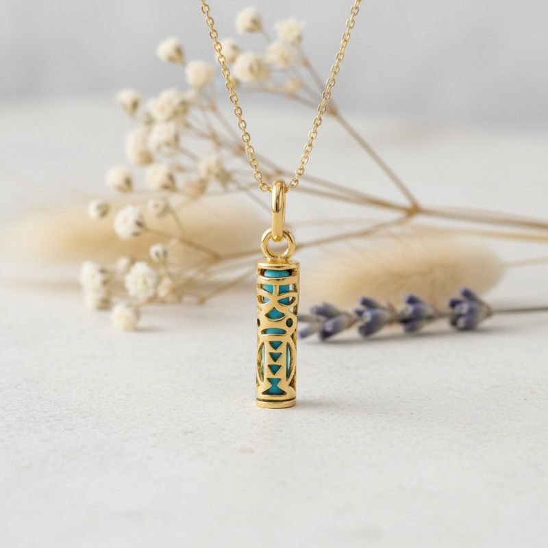 Et pourquoi ne pas vous laissez tenter par l'originalité de ce pendentif ? Il s'agit en effet d'un charmant pendentif Tiki qui a été réalisé en plaqué or de couleur jaune ainsi qu'en résine bleue turquoise. Il vous est proposé ici avec une hauteur de 17 mm. Sachez que son poids total est de 0.73 gramme si vous souhaitez l'offrir avec une chaine. Pensez à en prendre une plus lourde que le pendentif.