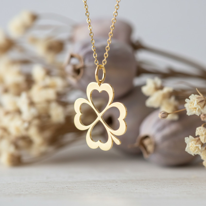 Nous avons choisi pour vous ce magnifique pendentif trèfle à cœurs pour vous. Il est réalisé en or jaune ce qui lui accorde ce joli ton doré. De plus, il est sublimé par son design arborant un trèfle à quatre feuilles. Symbole de chance, ce modèle au design ajouré dévoile des cœurs sur chacune de ses feuilles. De plus, ce bijou affiche 25 × 25 mm de dimensions faisant de lui un bijou particulièrement peu imposant. Vous pourrez aussi le porter avec tous les accessoires de votre choix.