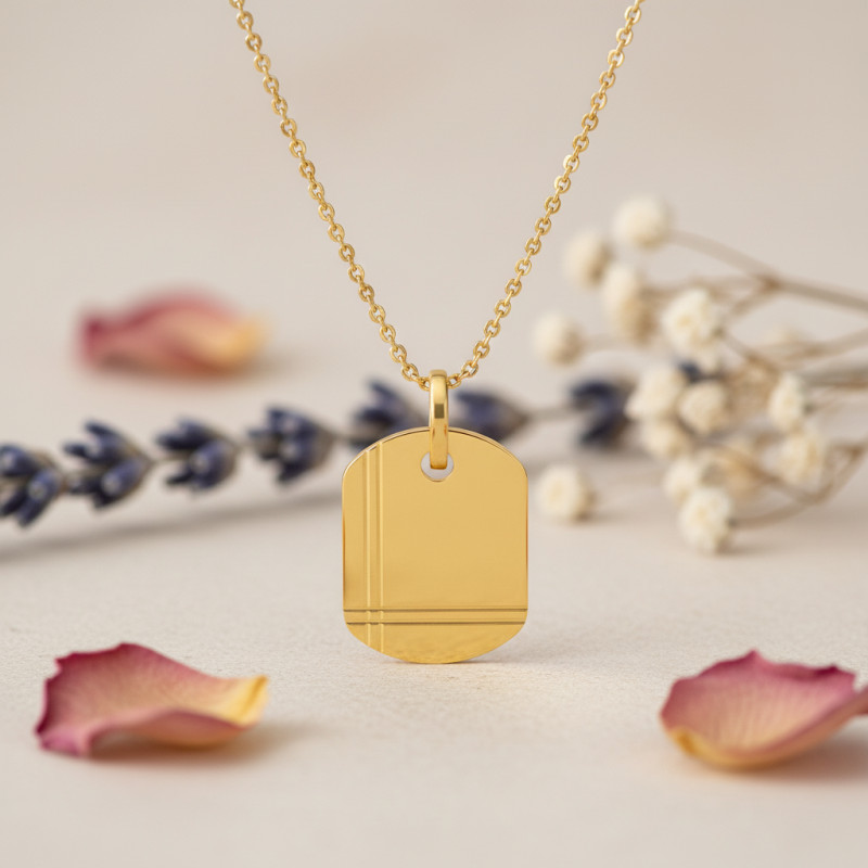 Médaille Précieuse s'associe à la maison Emanessence pour vous présenter ce pendentif plaque à graver en or jaune de qualité 375/1000 (9K) ou 750/1000 (18K) au choix. Il mesure 19 mm de hauteur et 15 mm de large. Sur la face avant, des petites rainures qui se croisent à angle droit sont visibles. Voici les poids correspondants en fonction du choix du pendentif :